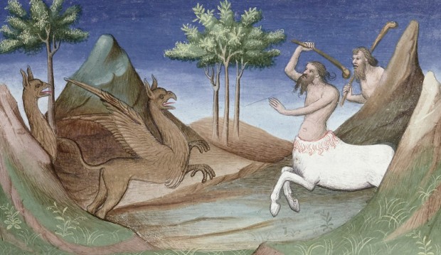 Illustration : Combat de centaures et de griffons (vers 1410-1412)