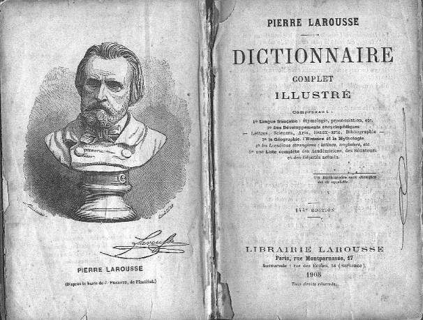 Mon premier livre de référence en français (et le seul pendant un certain temps) fut un dictionnaire Larousse datant de 1905 que mon père avait reçu (sans doute d’un voisin qui avait vidé son grenier).
