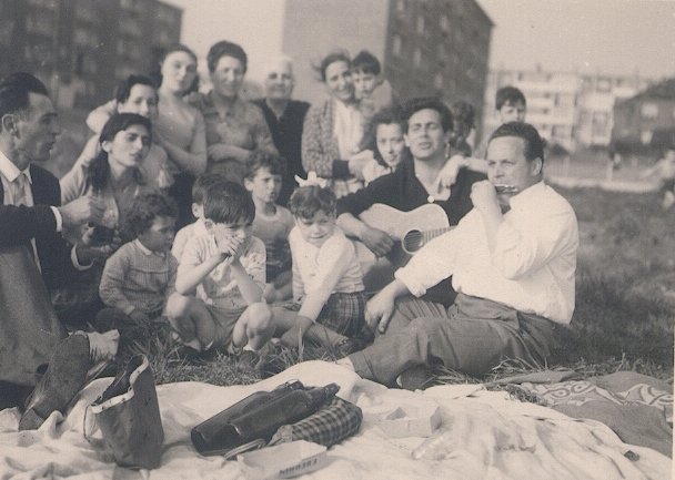 Souvenir d’un moment insouciant et merveilleux, celui d’un pique-nique de plusieurs familles italiennes dans un terrain vague près des appartements où nous logions.