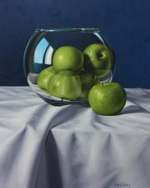 Illustration : Miguel Angel Nuñez, 2018 – Pommes vertes sur fond bleu