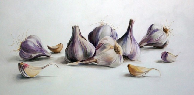 Illustration : Sandrine Verdier, 2010 – Têtes et gousses d’ail