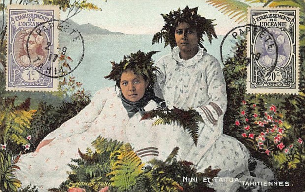 Illustration : Polynésie française, carte postale, début du 20e siècle – Nini et Taitua (femmes tahitiennes)