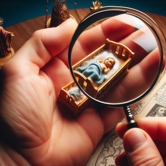 Illustration : Arcangelo Petrantò, 2023 – « Petit Jésus à la loupe »