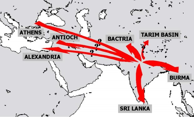 Illustration : Les missions de prosélytisme bouddhiste aux temps de l’empereur indien Açoka (règne de 264 à 232 av. notre ère)