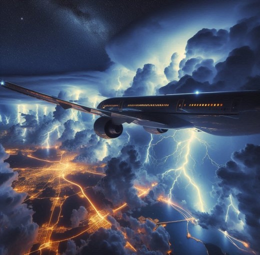 Illustration : Arcangelo Petrantò, 2024 – « Avion en vol pendant un orage»