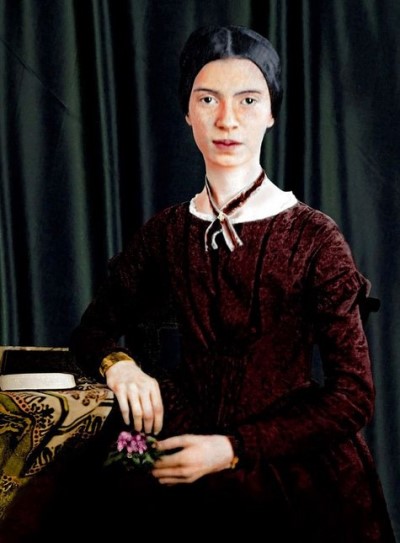 Illustration : La poétesse américaine Emily Dickinson (1830-1886), pionnière de la poésie moderne — photo d’époque colorisée (vers 1846-47)