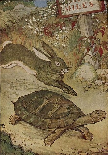 Rumes 24/01/2020 Illustration : Milo Winter, 1919 – Le lièvre et la tortue